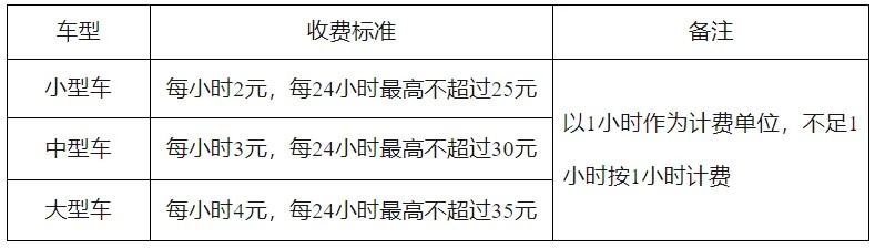 停車(chē)時(shí)間不超過(guò)1小時(shí)(含)不收費(fèi),新能源汽車(chē)不超過(guò)2小時(shí)(含)不收費(fèi),超過(guò)免費(fèi)時(shí)長(zhǎng)后: