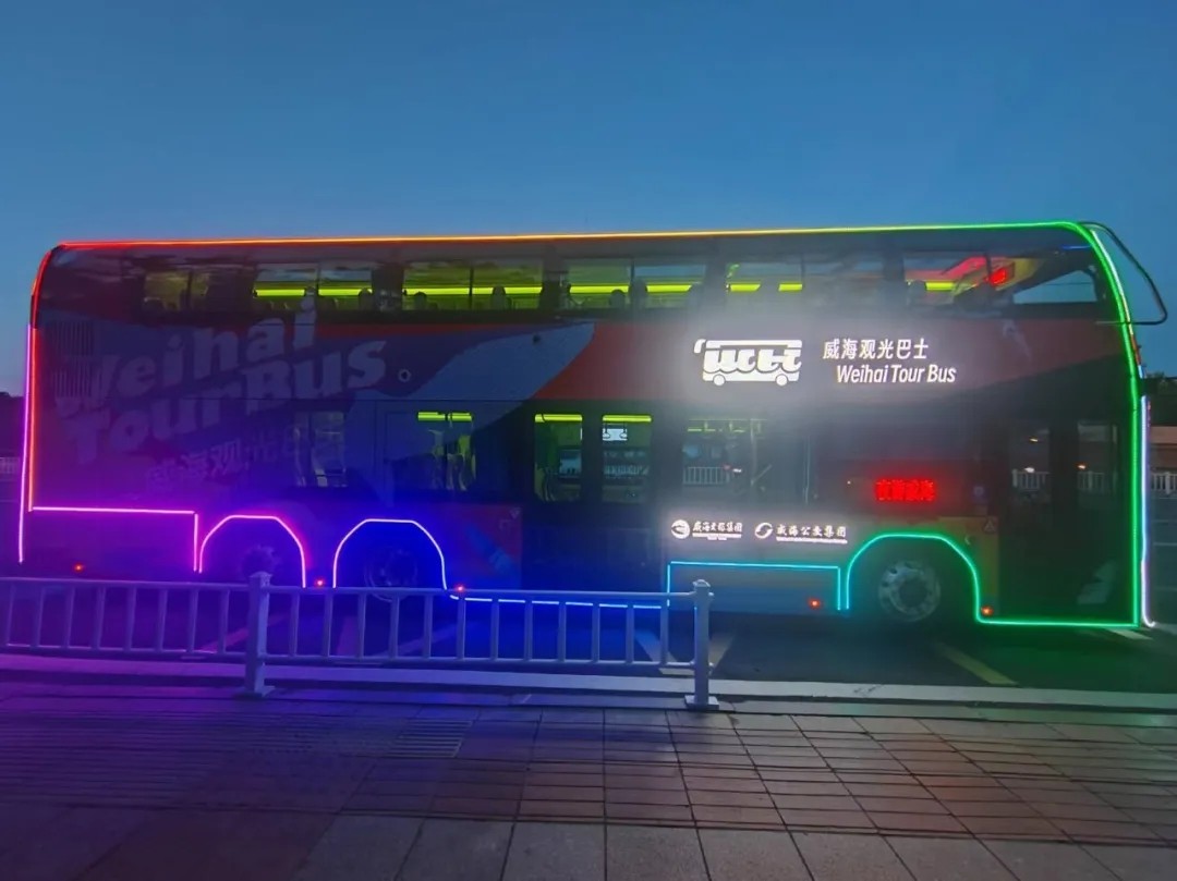 當(dāng)夜幕降臨,威海的燈火逐漸點亮,這座城市展現(xiàn)出了不同于白日的迷人魅力。邀請您乘坐威海雙層觀光巴士,開啟一場別開生面的夜游之旅。