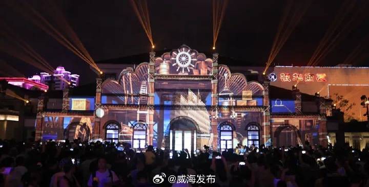 借助先進(jìn)的數(shù)字光影科技手段,棲霞街特色街區(qū)打造多個(gè)引人入勝的體驗(yàn)項(xiàng)目。如每晚在同樂廣場(chǎng)上演的裸眼3D光影秀《百年威海》,帶給市民游客一場(chǎng)視覺盛宴。該光影秀從海洋文化、衛(wèi)城文化、膠東文化切入,回溯威海過往歷史演變,展望“精致城市·幸福威?!蔽磥碓妇埃Ч鸷?。