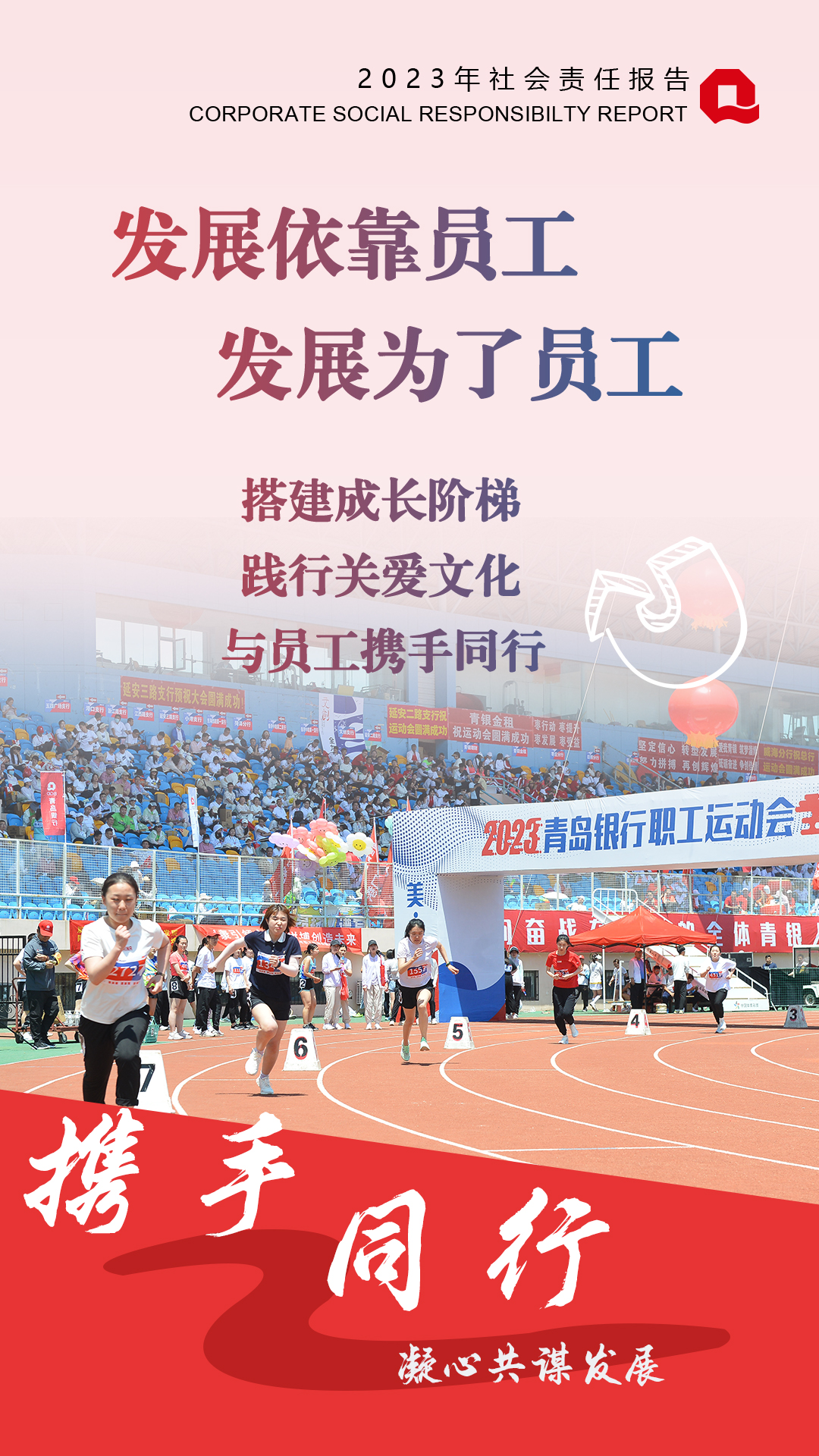 2023年,青島銀行堅(jiān)持“高質(zhì)量履責(zé)”與“高質(zhì)量發(fā)展”同行,對(duì)內(nèi)堅(jiān)持“發(fā)展依靠員工,發(fā)展為了員工”理念,為員工搭建成長(zhǎng)平臺(tái),踐行關(guān)愛文化,與員工攜手同行共成長(zhǎng);對(duì)外積極投身社會(huì)公益,向善而行,著力構(gòu)建具有青銀特色的慈善公益體系。